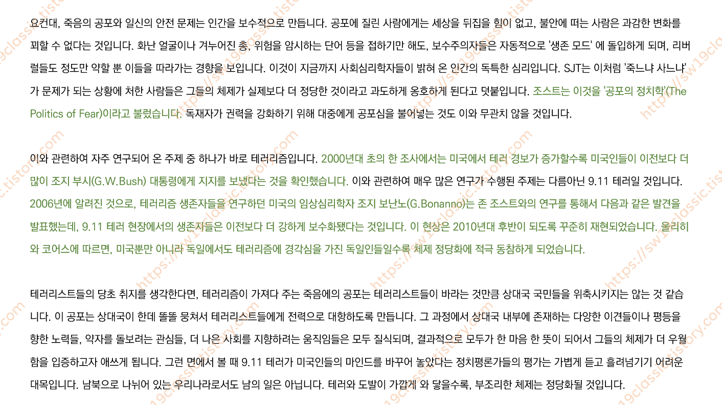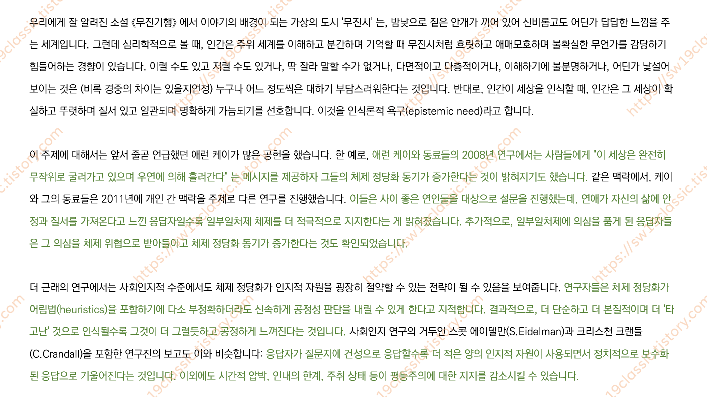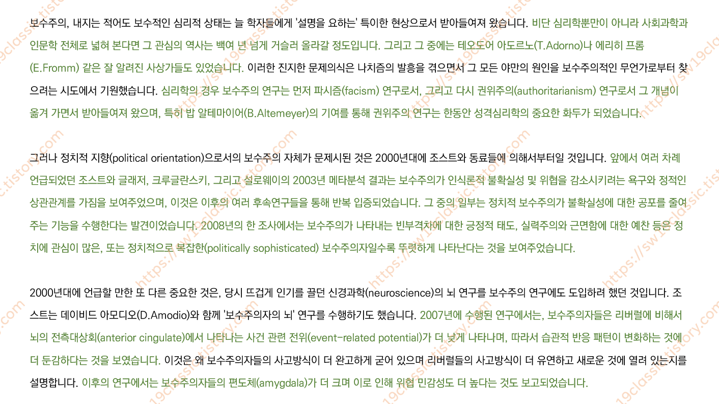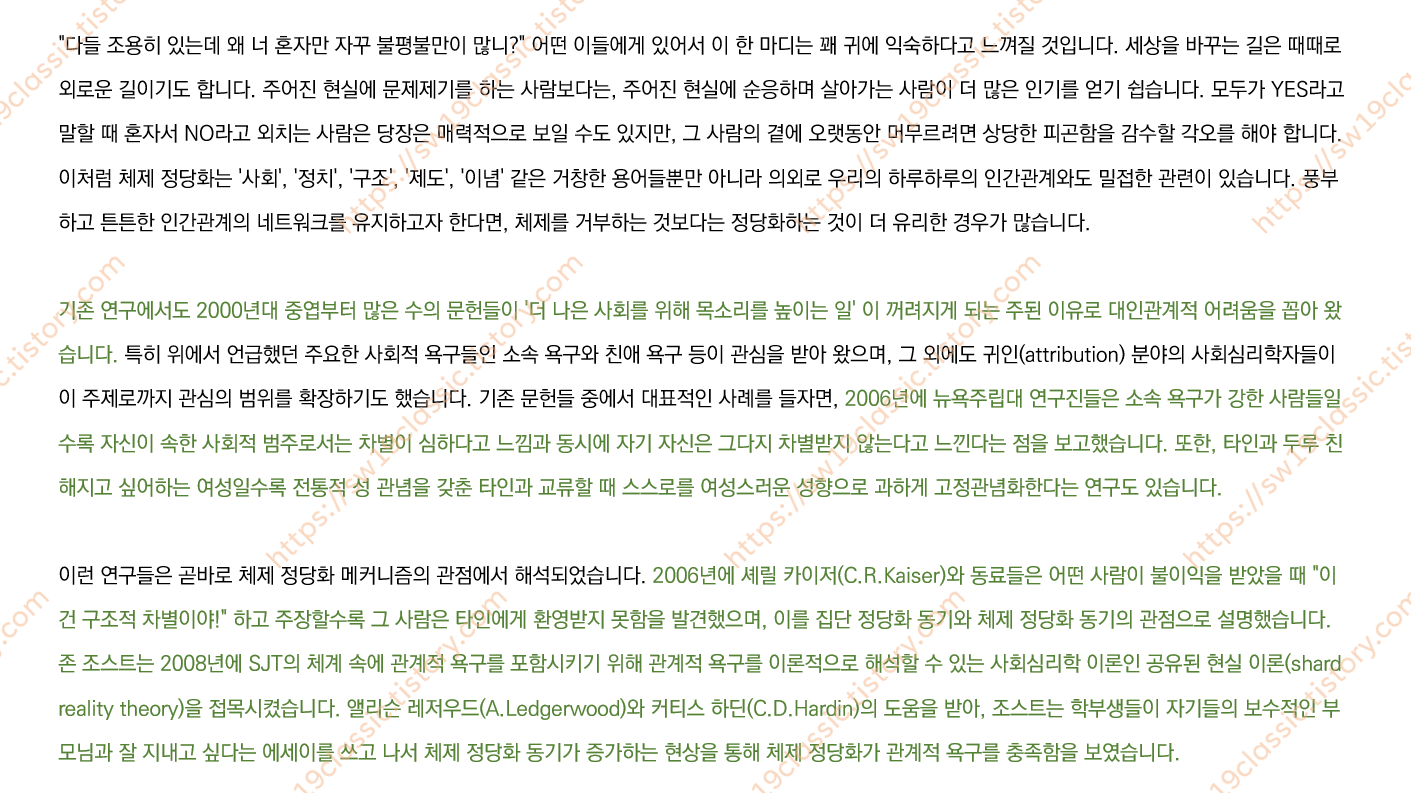 ※ 진녹색으로 하이라이트된 문장은 참고문헌 인용문 제시가 가능하므로, 필요 시 댓글로 문의 바랍니다.