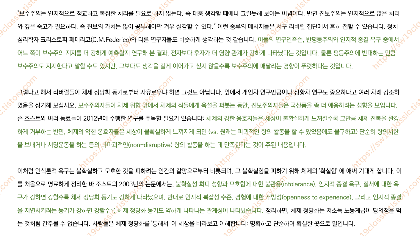 ⑤ 체제 정당화와 보수주의의 3대 욕구